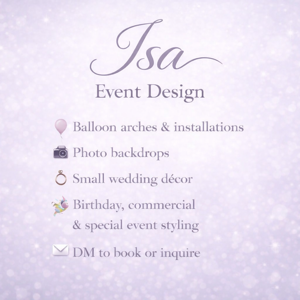 Isa Events specialises in bespoke balloon artistry and event styling for birthdays, baby showers, graduations, weddings, and intimate gatherings. Every design is carefully crafted to add vibrant and stylish touches that make your event unforgettable.